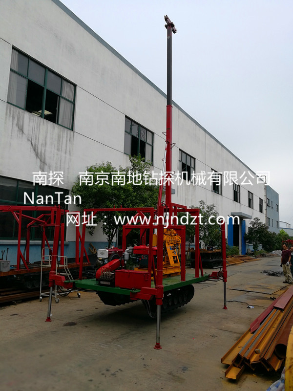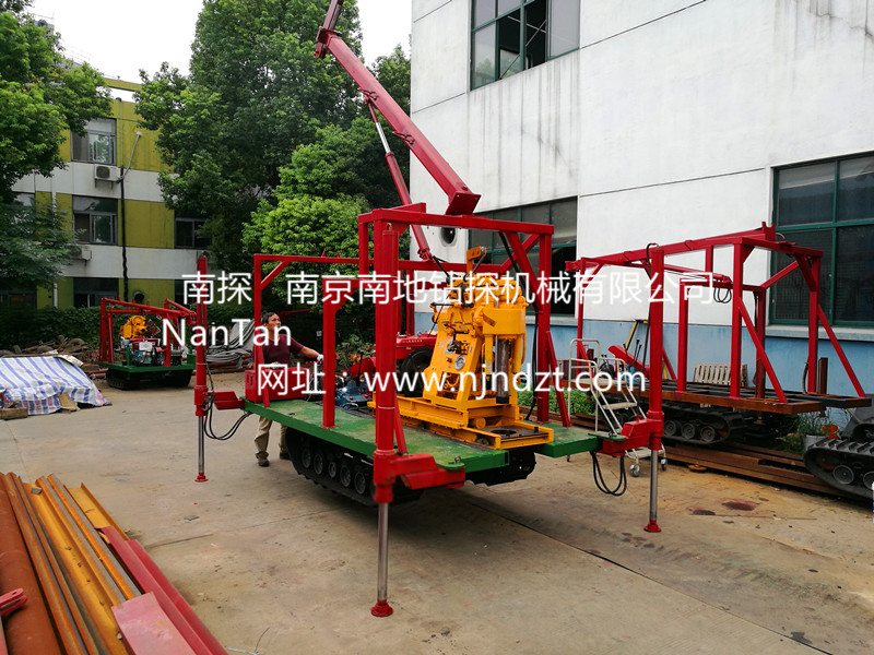 該履帶底盤承載重量達4T,可以裝載各種小型鉆機,如:XY-1-1、XY-1、XY-1A、XY-1A(YJ)、XY-1A-4、XY-1A-5、XY-1B、XY-1B-1、XY-1B-2、XY-200、XY-200(YJ)、XY-200B、XY-200B-1、XY-200B-2、GXY-1系列、GXY-2Q、GXY-200B、GYQ-200、GYQ-200A、GK180、GXY-2K、GXY-2C等100-300米鉆機,并可同時載BW160BW160A、BW200BW200A型泥漿泵,具有伸縮式液壓起落鉆塔、行走方便、上下汽車安全等特點,廣泛適用于公路、鐵路、水電、橋梁、壩基等的工程地質(zhì)勘察、地質(zhì)巖芯鉆探、物理勘察、小型灌漿孔、爆破孔、水井孔和空調(diào)孔的鉆進。