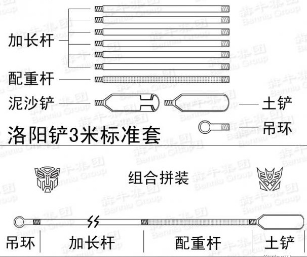 白蠟桿。使用時(shí)垂直向下戳擊地面,可深逾20米,利用半圓柱形的鏟可以將地下