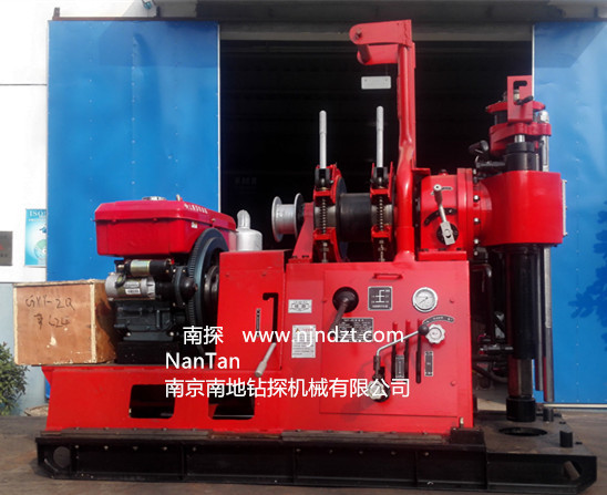 鉆機(jī)介紹IntroductionGXY-2Q型鉆機(jī)是一種機(jī)械傳動(dòng)液壓給進(jìn)的立軸回轉(zhuǎn)式、輕便多用途工程勘察施工鉆機(jī),它適用于工業(yè)和民用建筑以及公路、鐵路、橋基、壩址、水利、水井、探礦等工程地質(zhì)勘察工作,淺層石油和天然氣開(kāi)采,礦山坑道通風(fēng)、排水,以及小口徑的基樁孔施工等,固體礦床的普查勘探,爆破孔用各種混凝土結(jié)構(gòu)的檢查孔等既可以取土樣、巖芯樣,也可以不取芯鉆孔(鉆孔灌漿、水井等),或者進(jìn)行重型動(dòng)力觸探和標(biāo)準(zhǔn)貫入試驗(yàn)(SPT)、沖擊鉆進(jìn)提取不擾動(dòng)土土壤取樣原狀土或者沙土取樣是一種多用途液壓鉆機(jī)。                 根據(jù)地層的不同,可選用金剛石、硬質(zhì)合金、螺旋等鉆頭進(jìn)行鉆孔。具有結(jié)構(gòu)緊湊,重量輕,體積小,可拆性好等優(yōu)點(diǎn),是適應(yīng)新型市場(chǎng)需求不可多得的理想設(shè)備之一。      主要特點(diǎn)(Features):                        1、選擇了較合理的轉(zhuǎn)速范圍,轉(zhuǎn)速級(jí)數(shù)有八級(jí),集中變速,相互自鎖。                                           2、低轉(zhuǎn)速,大扭矩,使用范圍廣,鉆進(jìn)能力強(qiáng),能適用于鉆機(jī)取樣、打井及樁基施工。既適用于工程地質(zhì)勘察,又適用于金剛石巖芯鉆探。                                  3、鉆機(jī)具有兩檔反轉(zhuǎn)速度,便于安全地處理故障。       4、回轉(zhuǎn)器卡盤(pán)采用手動(dòng)球卡式卡盤(pán),夾緊可靠,不傷主動(dòng)鉆桿,可實(shí)行不停機(jī)倒桿。                              5、油壓給進(jìn),操作簡(jiǎn)便,鉆進(jìn)效率高,勞動(dòng)強(qiáng)度低。     6、配有足夠儀表,有利于掌握孔內(nèi)情況,操縱手柄較少,布局較合理,操縱靈活可靠。                                                                            7、采用了雙片常閉磨擦式離合器,開(kāi)閉靈活,操作使用與調(diào)整方便。                                       8、裝有前后移動(dòng)油缸,回轉(zhuǎn)器向后移動(dòng)465mm,對(duì)起下鉆具帶來(lái)了很多方便。                                9、結(jié)構(gòu)緊湊,體積小,重量輕,拆卸方便,便于解體及搬運(yùn),能適用于丘陵或山區(qū)的鉆探工作。               10、主動(dòng)鉆桿采用中六方53*Φ59。                                                                  主要技術(shù)參數(shù)Technical Specifications: