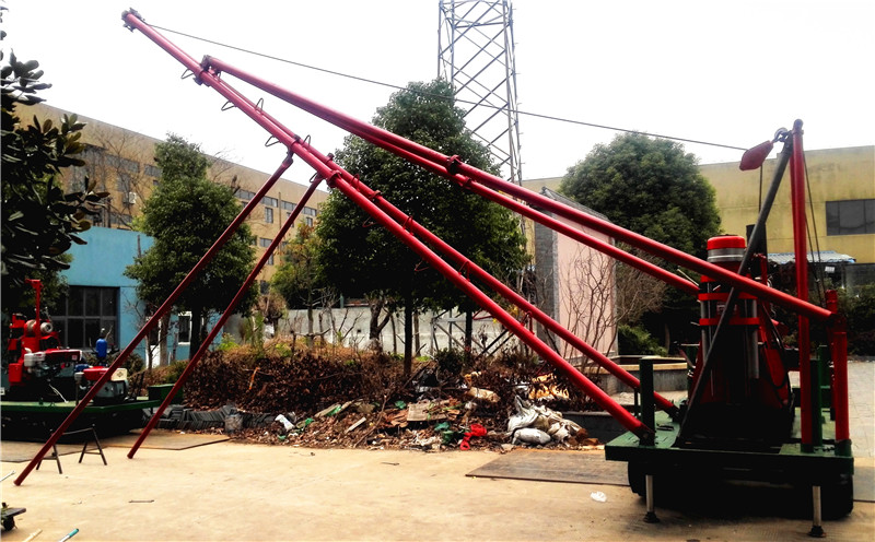 5、起、落鉆塔為利用鉆機(jī)卷?yè)P(yáng)機(jī)帶動(dòng)起降、方便可靠。
